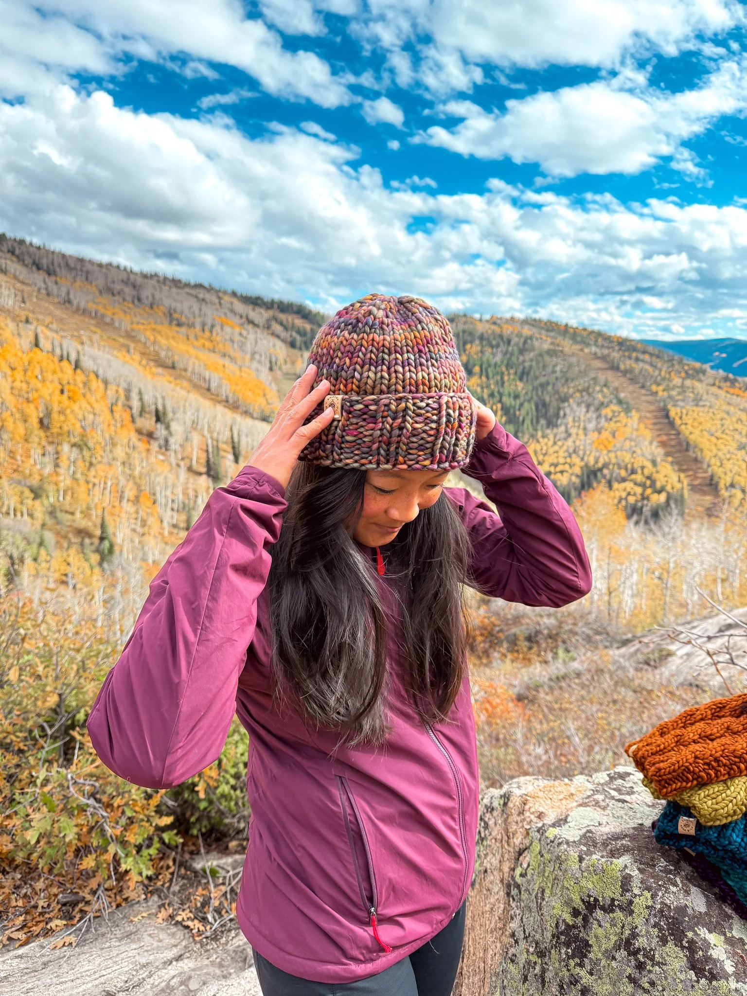 Whether you're hitting the trails, breathing in the crisp mountain air, or cozying up in the cabin by the fire, this beanie is designed to keep you warm, comfortable, and excited to put it on your head.